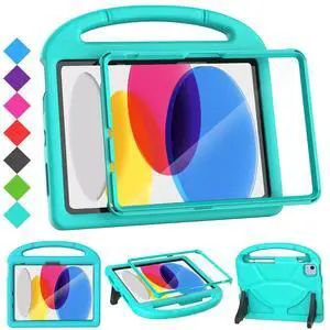 SUPLIK Kids Case for iPad A16 11-Inch 2025 (11th Gen) & iPad 10th Generation (10.9" 2022), Durable Shockproof Stand Cover with Screen Protector/Pencil Holder/Handle for Kids, Cyan