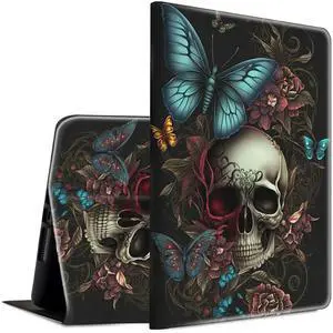 BFSEROBJ for iPad 9th Generation Case 10.2 inch for iPad 7th/8th Generation Case Lightweight Smart Cover PU Leather Adjustable Stand Protective Cover with Auto Wake/Sleep - Blue Butterfly Skull