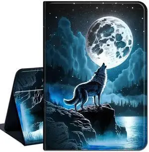 Case for All-New Fire HD 10 & 10 Plus Tablet 10.1" (13th/11th Generation, 2023/2021 Release), Slim PU Leather Stand Cover with Card Slot & Auto Wake/Sleep, Wolf Howling Under The Moon