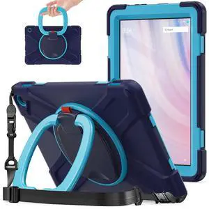 All-New Fire HD 10 & Fire HD 10 Kids Pro Tablet Case (13th Gen, 2023 Release),Heavy Sturdy Shockproof Kids Case,Rotating Stand/Carrying Strap (Navy Blue+Blue)