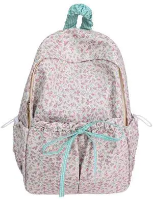 Cute Aesthetic Bow Backpack for Women Kawaii Floral Print Preppy College Book Bag Trendy Coquette Laptop Daypack (Purple)