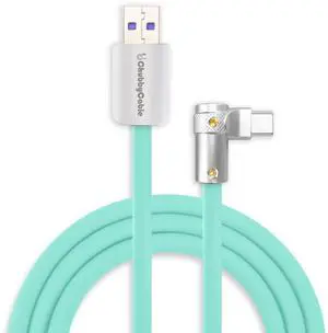 chubbycable FlexElbow 90 Degree 120W Fast Charging Cable Right Angle USB C Cable Silicone Charging Cord Compatible with iPhone 17-15 Series iPad, Green, USB-A to Type-C, 3.3FT