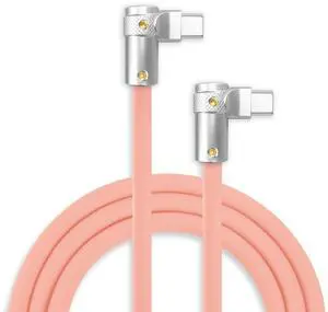 chubbycable FlexElbow 90 Degree 240W Fast Charging Cable Right Angle USB C Cable Silicone Charging Cord Compatible with iPhone 17-15 Series iPad, Pink, Double Elbow Type C to Type C, 13.1FT