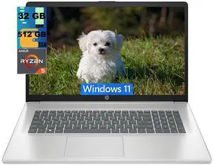 HP 17 Laptop, 17.3" FHD (1920 x 1080) Display, AMD Ryzen 5 7430U 6 cores Processor, AMD Radeon Graphics, 32GB DDR4  512GB PCIe SSD, Wi-Fi 6 and Bluetooth 5.3, Windows 11 Pro
