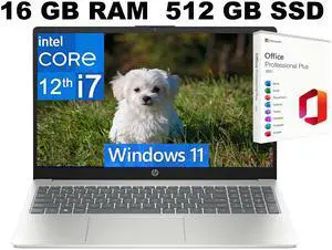 HP 15 Laptop, 15.6" FHD (1920 x 1080) Display, Intel Core i7-1255U 10-Core processor, Intel Iris Xe Graphics, 16GB DDR4  512GB PCIe SSD, Wi-Fi 6, Windows 11 Pro ,Office 2021 License