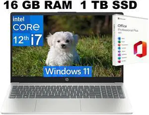 HP 15 Laptop, 15.6" FHD (1920 x 1080) Display, Intel Core i7-1255U 10-Core processor, Intel Iris Xe Graphics, 16GB DDR4  1TB PCIe SSD, Wi-Fi 6, Windows 11 ,Office 2021 License
