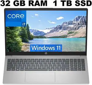 HP 15 Laptop, 15.6" FHD (1920 x 1080) Display, Intel Core i7-1255U 10-Core processor, Intel Iris Xe Graphics, 32GB DDR4  1TB PCIe SSD, Wi-Fi 6, Windows 11 ,Office 2021 License