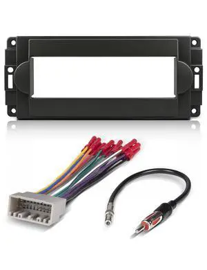 NuIth Single Din Radio Installation Dash Kit W/Radio Wiring Harness for 2005-2007 Chrysler 300C /Dodge Ram Charge Dokata/Jeep Cherokee, Single Din Radio Mounting Plate for Factory Radio Mounting