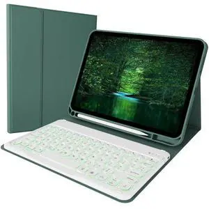 ZOPSGYU Keyboard Case for iPad A16 2025 11th Generation, for iPad 10th Generation 10.9" 2022 Case with Keypad -7 Colors Backlit Wireless Detachable Folio Keyboard with Pencil Holder, Dark Green