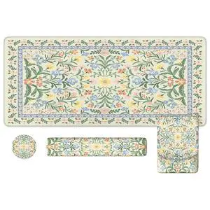 iLeadon Green Floral Desk Cover Mat, Computer Mouse Pad and Keyboard Wrist Rest, Non-Slip Base Keyboard Wrist Rest and Mouse Pad Set, Office Desk Mat Cute for Women (Light Green)