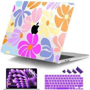 DONGKE Compatible with M4 MacBook Air 15 inch Case 2025 2024 2023 A3241 A3114 A2941 M3 M2 Liquid Retina Display Touch ID, Plastic Hard Case & Keyboard Skin & Screen Protector - Colorful Florals