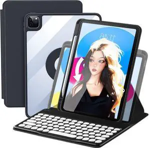 AnMengXinLing Keyboard Case for iPad Air 11 inch 2025(M3)/2024(M2)/Air 5/Air 4, Vertical Case for iPad Pro 11 with Keyboard and Pencil Holder, Magnetic Rotating Detachable Clear Back (Black)