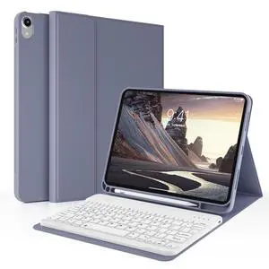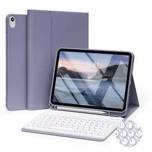 IAMKHO Keyboard Case for iPad 9th/8th/7th Generation 10.2 inch 2021/2020/2019, Detachable Wireless Bluetooth Keyboard Thin & Light with Pencil Holder for iPad Air 3rd Gen/Pro 10.5, Purple Gray