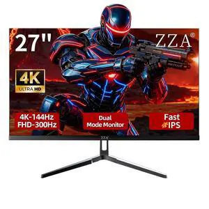 ZZA 27 Inch 4K Gaming Monitor,Dual Mode UHD(3840x2160) 144Hz & FHD1920 * 1080 300Hz, Adaptive Sync,HDMI 2.1 & DP 1.4, Tilt Adjustment PC Monitor, VESA, Black