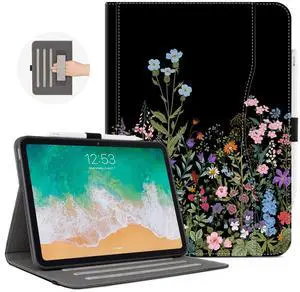 Lalumix for iPad 9Th/8Th/7Th Generation Case, Floral for iPad Case 9Th Generation, for iPadcase 10.2 Inch Pencil Holder/Hand Strap/Pocket/Anti-Skid Stripes View Auto Wake/Sleep Black Flowers