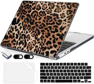 MecBevia Compatible with 2026 M5 MacBook Air 13 inch Case 2026 2025 2024-2022 M5 A3449 M4 A3240 M3 A3113 M2 A2681, Keyboard Cover, Screen Protector, Webcam Cover & Type-C OTG, Leopard Print