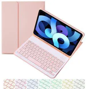 CHAINORA Keyboard Case for iPad Air 11 inch (M2 2024& M3 2025)/Air 5th/ 4th Generation, Slim Folio Cover Detachable Bluetooth Keyboard with Pencil Holder (Pink)