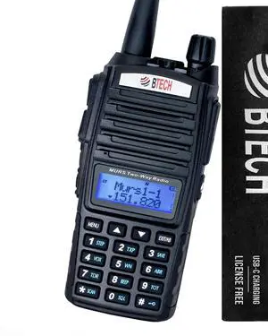BTECH MURS-V2 200 Fully Customizable Channels MURS Two-Way Radio. USB-C Charging, IP54 Weatherproof, Dual Band Scanning (VHF/UHF), FM Radio, & NOAA Weather Broadcast Receiver