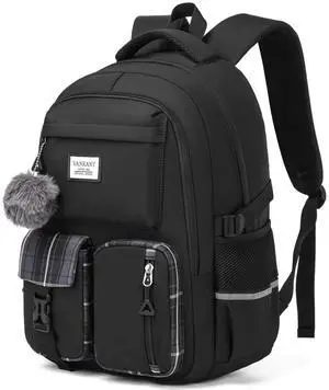 VANKANY School Backpack for Teen Girls, Big Student Laptop Backpack Aesthetic Bookbags for College Women Elementary Middle High School Travel Mochilas Escolares, Black