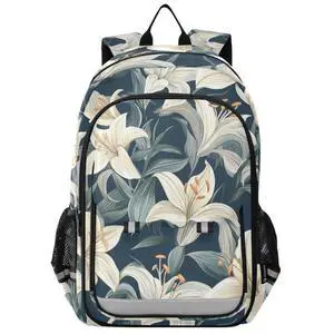 ALAZA Elegant Floral with Lily School Backpacks Reflective Safety Backpack