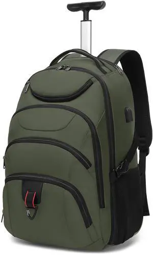 Boavan Rolling Backpack,17 inch Water Resistant Wheeled Backpack,Carry on Luggage Business Bag, Overnight College Computer bag Trolley Suitcase for Men Women Adults to TravelGreen