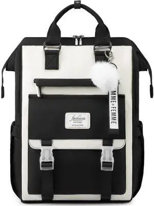 LOVEVOOK School Backpack for Student,15.6 Inch College Backpack, Light Weight Cute Bookbag for Girls, Waterproof Casual Daypack Laptop Backpack fits School Travel CasualBlack&Beige