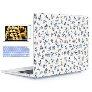 YSCLBAHUK for MacBook Air 13.6 inch M5 M4 M3 M2 Case 2026-2022 Model A3449 A2681 A3113 A3240 Cover, Printed Pattern Plastic Hard Shell Cover, Keyboard Cover+Screen+Trackpad Film,Blue Flower