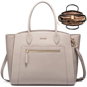 LOVEVOOK Laptop Tote Bag for Women, 15.6 Inch Large Capacity Work Bags Briefcase Purse with Multiple Pockets & Large Bottle Holder, Vegan Leather Business Office Computer Bag for Teacher, Pebble