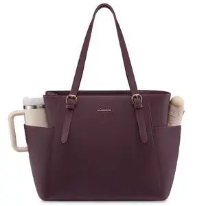 sedena Womens 16 Laptop Tote Bag Burgundy Vegan Leather Work Bag with Cupholder, RFID Pockets, Anti-Pickpocket Zipper, Travel Tote with Trolley Sleeve & Detachable Laptop Sleeve