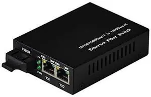 ipolex 3-Port Gigabit Ethernet Fiber Switch, with 1 Port Dual SC Fiber, 20 km