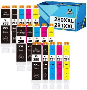 IN INTACTECH PGI-280 XXL CLI-281 XXL Compatible Ink Cartridges Replacement for Canon 280 281 Work with Pixma TR8620a TR8620 TS702a TS9520 TS9521C TR8520 TS6220 TS6320 TS8220 (15-Pack, PGBK/BK/C/M/Y)