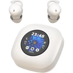 Bluripp Sleepals Touch Wireless Sleep Earbuds with Smart Charging Case, Noise Reducing Headphones for Side Sleepers, Touch Screen Display (White)