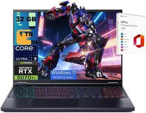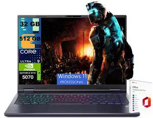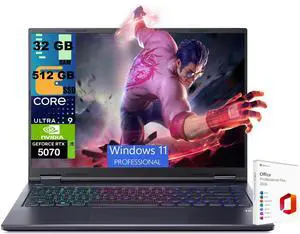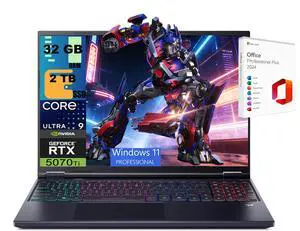 Acer Predator Helios Neo 16S AI Gaming Laptop, 16" 2560x1600 OLED 240Hz, Intel 24-core Ultra 9 275HX Processor, RTX 5070 Ti 12GB Graphic, 32GB DDR5  1TB PCIe SSD, Windows 11 Pro, Office 2021 License