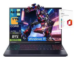 Acer Predator Helios Neo 16S AI Gaming Laptop, 16" 2560x1600 OLED 240Hz, Intel 24-core Ultra 9 275HX Processor, RTX 5070 Ti 12GB Graphic, 64GB DDR5  4TB PCIe SSD, Windows 11, Office 2021 License