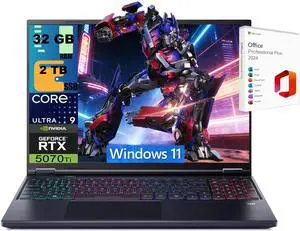 Acer Predator Helios Neo 16S AI Gaming Laptop, 16" 2560x1600 OLED 240Hz, Intel 24-core Ultra 9 275HX Processor, RTX 5070 Ti 12GB Graphic, 32GB DDR5  2TB PCIe SSD, Windows 11 Pro, Office 2024 License