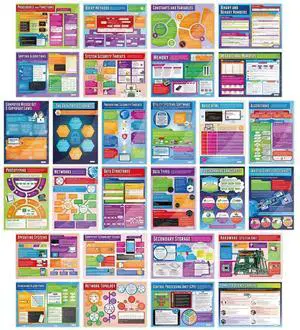 Daydream Education Computer Science Classroom Posters - Set of 32 - EXTRA LARGE 33 x 23.5" - Gloss Paper - STEM Middle & High School Class Decoration - Wall Charts