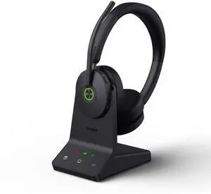 Yexatel Wireless Headset with Noise-Canceling Mic & 40H Talk Time Bluetooth Office Headset for Teams/Zoom/3CX, Fast-Charging Stand, Mic Mute, Lightweight Design (Y891BTD)
