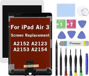 10.5" New LCD Screen Replacement for iPad Air 3 (3rd Gen) 2019, A2152 A2123 A2153 A2154 Display LCD Assembly and Glass Touch Digitizer Premium Repair Kit - White