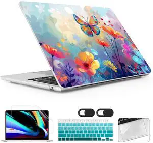 AKIT Compatible with MacBook Air 13 inch Case 2025 2024-2022 M4 M3 M2 A3240 A3113 A2681, Unique Pattern Hard Shell Laptop Case+Screen Protector+Keyboard Cover for Mac Air 13.6 inch, ButterflyFlowers