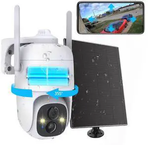 2K PTZ Solar WiFi Security Camera with AI Motion, Color Night Vision, 360 View, Waterproof, Alarm - Rechargeable Battery
