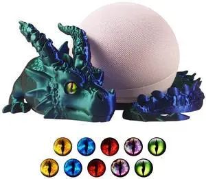 Cragite Dragon Holder for Echo Dot 4th/5th Gen, 3D Printed Echo Dot Cover, 5 Color Eye Sets, Originally Designed Echo Dot Stand, Unique Echo Dot Case (Blue Green)