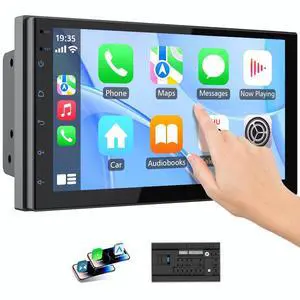 Haudio Double Din Wireless CarPlay Screen for Car, 7" HD Touchscreen with Apple CarPlay, Android Auto, GPS Navigation, Bluetooth, Voice Control, Mirror Link (2+32G, No Backup Camera)