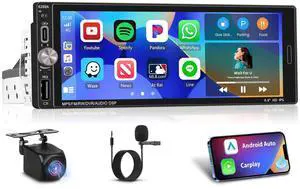 [2+32G] Single Din Touchscreen Radio Wireless Apple Car Play Wireless Android Auto, 6.9 in Single Din Car Stereo with Mirror Link Bluetooth 5.0 FM RDS GPS Navigation 32EQ SWC + Backup Camera
