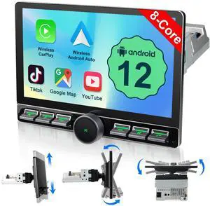 Single Din Vertical Car Stereo 10.4 inch Rotatable Touch Screen Radio - Wireless Carplay/Android Auto/EQ Audio/Bluetooth/GPS Navigation/FM Radio/SWC +Backup Camera