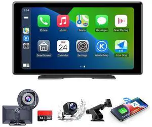 9inch Portable Carplay Screen for Car, Wireless Apple Carplay & Android Auto with 4K Dash Cam,1080p Backup Camera,Car Audio Receivers, GPS Navigation, SuperLink,FM, Music Player