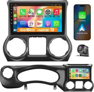 Upgraded Android 13 Car Radio for Jeep Wrangler (2011 2012 2013 2014), 10.2 Inch Car Radio with Carplay&Android Auto Support GPS Navigation, Backup Camera,FM/RDS Radio