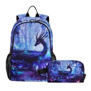 ALAZA Dragon in Forest Backpack and Lunch Bag Set Back Pack Bookbag Cooler Case Kits