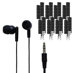 Avid Disposable Earbuds AE-215 Stereo Rubber Tip Bulk Earbuds, Black (500 Pack)