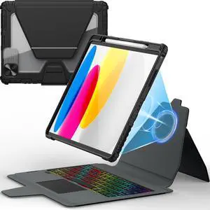 RAYMCRAFT for iPad 10th Generation Case with Keyboard, Magic-Style Keyboard Stand, Springy Backlit Keys, Stain-Resistant Surface, Multi-Touch Trackpad, for iPad 10th Gen 10.9" 2022,Black