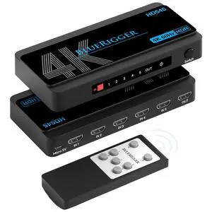 BlueRigger 4K HDMI Switch 5 in 1 Out (4K 60Hz, 5 Port Video Switcher, HDMI Hub, HDR10+, 18Gbps, Selector Box with IR Remote) Compatible with HDTV, PS5, Xbox, Apple TV, Projector, Blu-Ray